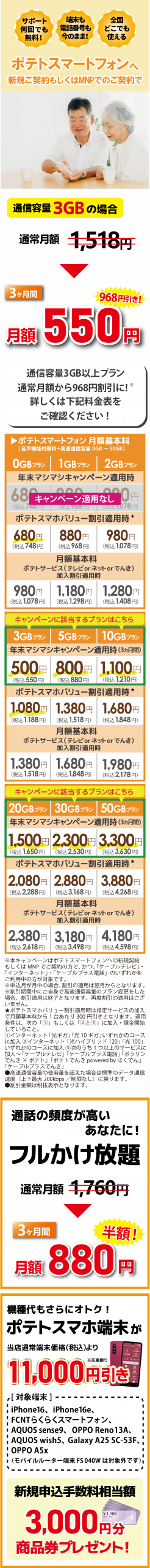 【ポテトスマホ 3GB付 月額550円(3ヶ月間)】