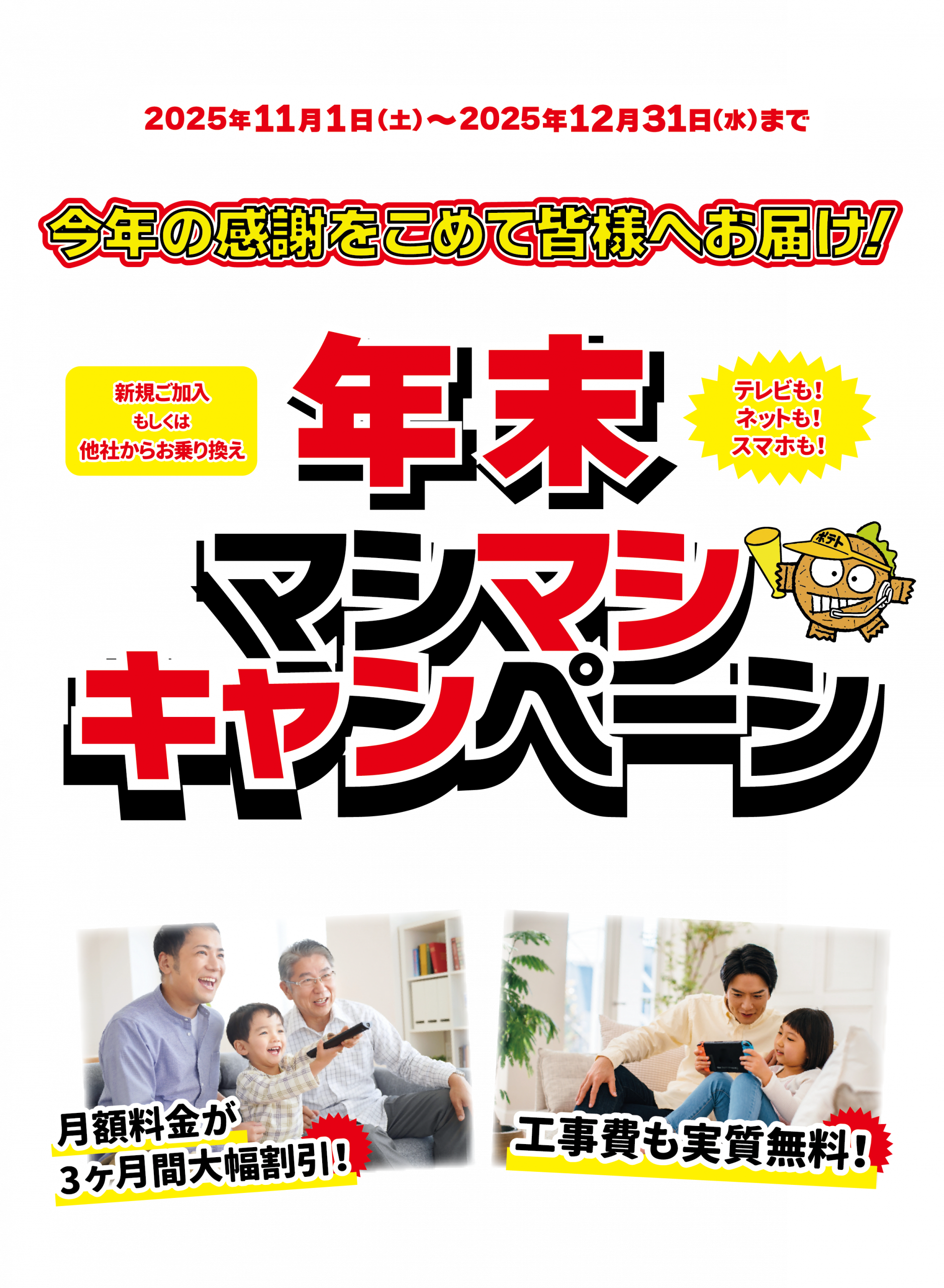 ※ポテトのサービス(ケーブルテレビ・インターネット・固定電話)いずれかにご加入の方が対象です。